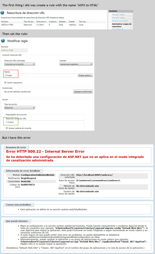 Thank you!. I placed the code I put in the file "/config/UrlRewriting.config" but I did not work and has launched a mistake, I'm using Umbraco version 4.7.1. Any other ideas?