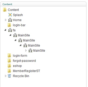 From the screeenshot I must admit that I think your content structure looks a bit odd - do you need all those levels for your main site? :)