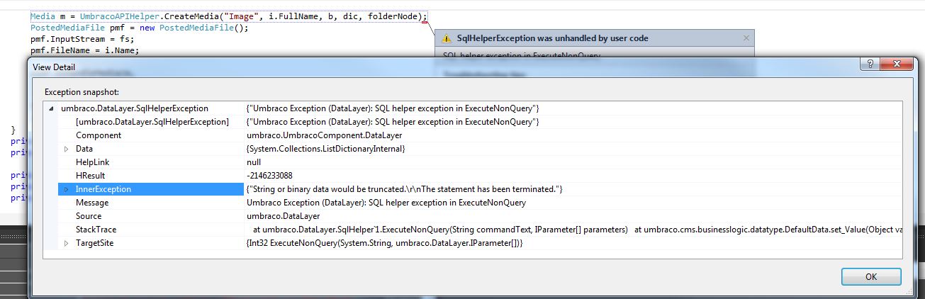 Creating Media through api casts sql error "string of binary data would be truncated..." Help