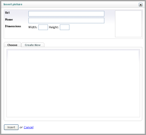 Have there been done any upgrades or other changes just before you started seeing this? And do you get any messages viewing the console in either chrome or firefox when loading the "insert picture" option?