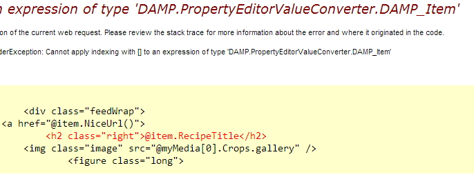 When an exception is thrown, the highlighted line has no relation to the error, the image below demonstrates, but just so everyone knows, I broke it to demonstrate the error in an obvious way, ie the error is thrown on the image property not the highlighted one. Had this happening yesterday and it seemed random, whatever it was it confused the life out of a not very smart person.