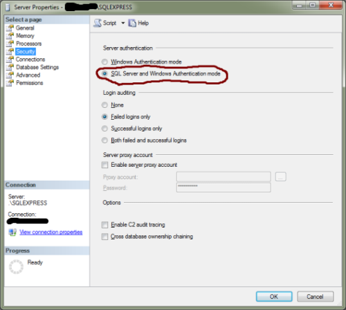 The password for the "sa" (serveradmin) user, must be chanced. The dots are no password, and can be chanced to your perferred one :)