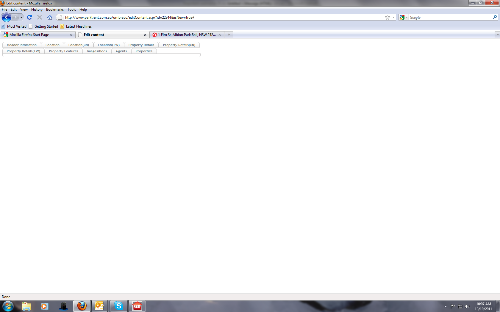 The link in the URL bar is: ourdomain.com.au/umbraco/editContent.aspx?id=22944&isNew=true#