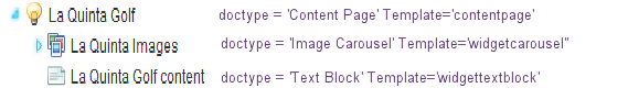 Hopefully the above shows how my pages are built up, so Content page allows the doctypes 'image carousel' and 'text block' to be child nodes which then display on the page.