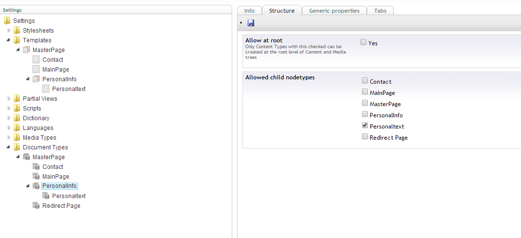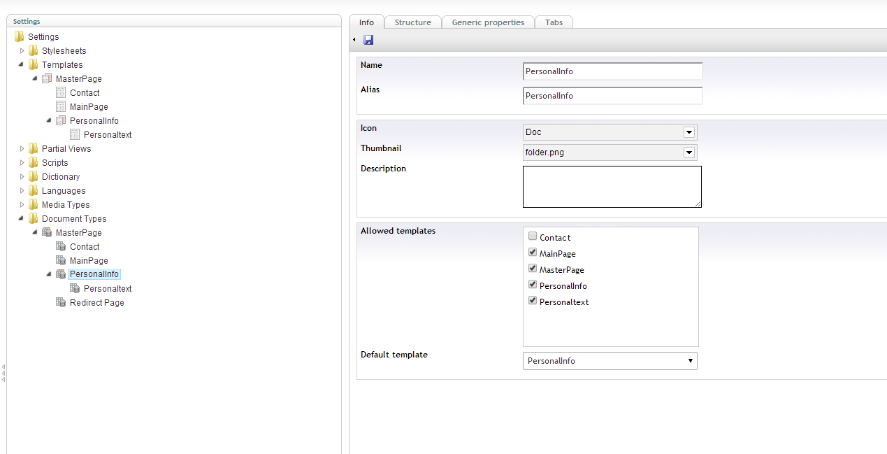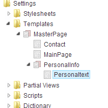I have done this first in umbraco, but I can't display template from personaltext in personalinfo. That's why I tried to get help from here. I hope you have solution to that, becuse I don't understand why isn't work.