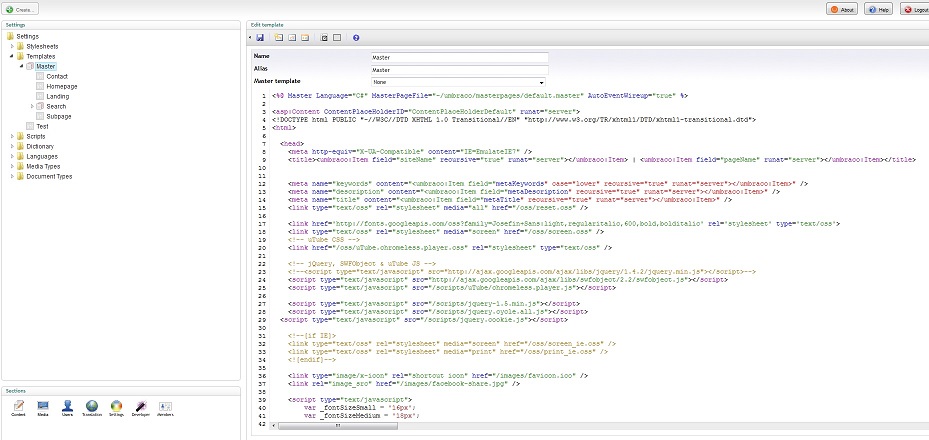 I'm only able to work with the online editor (http://www.waterford-living.com/umbraco/umbraco.aspx) - so is this even doable?