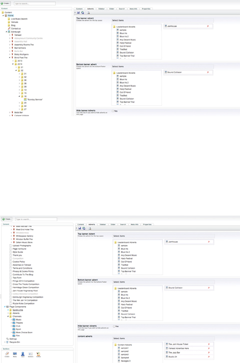 I have attached 2 JPEGs of some screengrabs of my website. The first page shows the homepage with the Live Music channel selected and the second with the Theatre (Live Shows) selected. Both of these have the top banner the same, i would like to be able to have all of these 'channels' so I could have a different banner at the top. The second page shows 2 screengrabs of Umbraco, on the second file at the bottom left are the 'channels' for different events that I would like to be able to control their content more, is this possible?