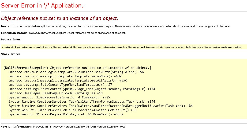 When I try to view the Document Types listed in my admin the list is shown but when I try to edit a document Type I get the following error: