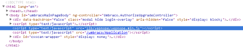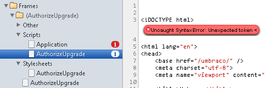 The script pathing to the file is invalid (see screenshot). It's missing /Umbraco before lib/