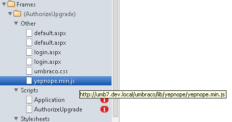 Research shows the file it's looking for is the /Umbraco/lib/yepnope/yepnope.min.js