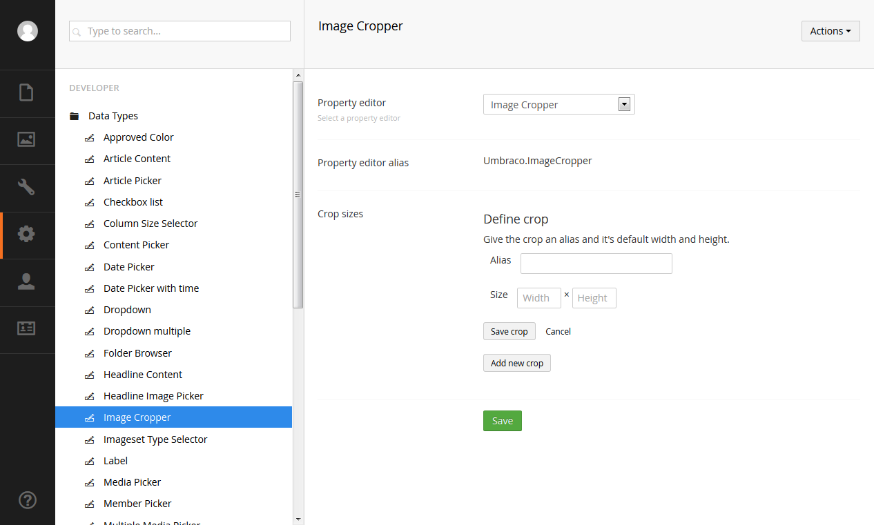 I have a problem with the new Image Cropper in 7.1. When I try to define a new crop size, nothing happens. I just get the green bar in the bottom saying the datatype has been saved. But shouldn't there be a list of defined crops?
