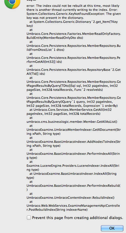 I get the same error when I try to rebuild the index...
