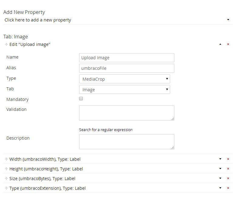 I simply replaced the Upload property with the media cropper.