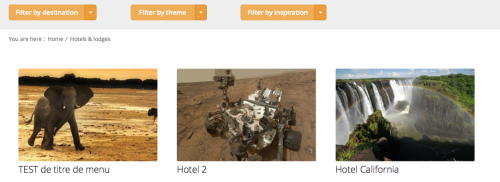 I have to implement a filter for a list of pages. Each page is a hotel. There are different pages and each page/hotel should have a theme, a destination name and an Inspiration.