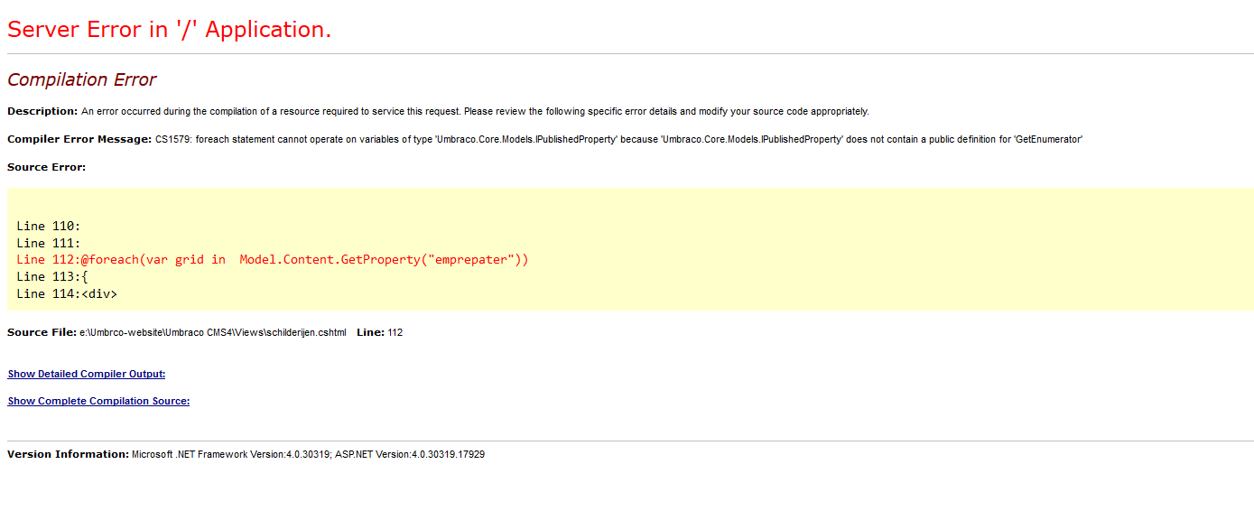 foreach statement cannot operate on variables of type 'Umbraco.Core.Models.IPublishedProperty' because 'Umbraco.Core.Models.IPublishedProperty' does not contain a public definition for 'GetEnumerator'