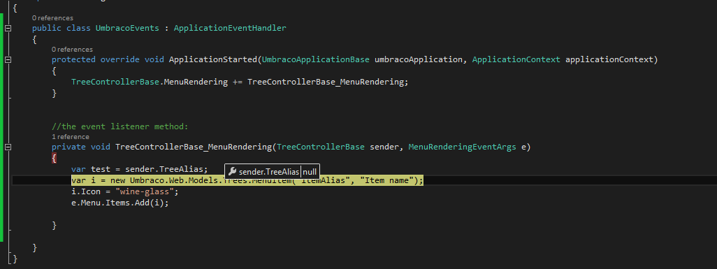 I'm trying to add a menu option in the context menu. So far I manage to figure out that I need to hook in the TreeControllerBase.MenuRendering event and then create a new MenuItem.