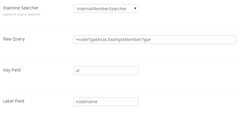 Here's another example, this time configuring the Lucene pickers to return members of 'ExampleMemberType':