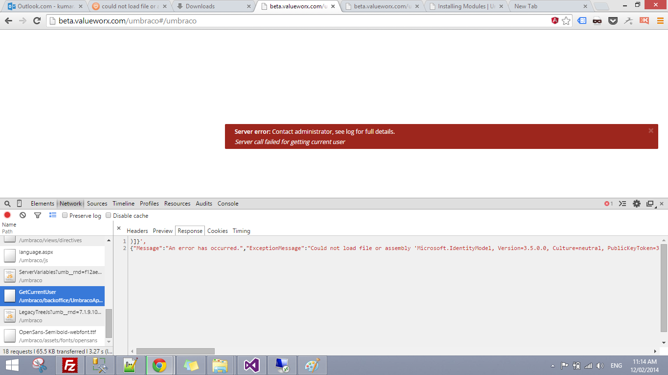 http://beta.valueworx.com/umbraco/backoffice/UmbracoApi/Authentication/GetCurrentUser throws the error