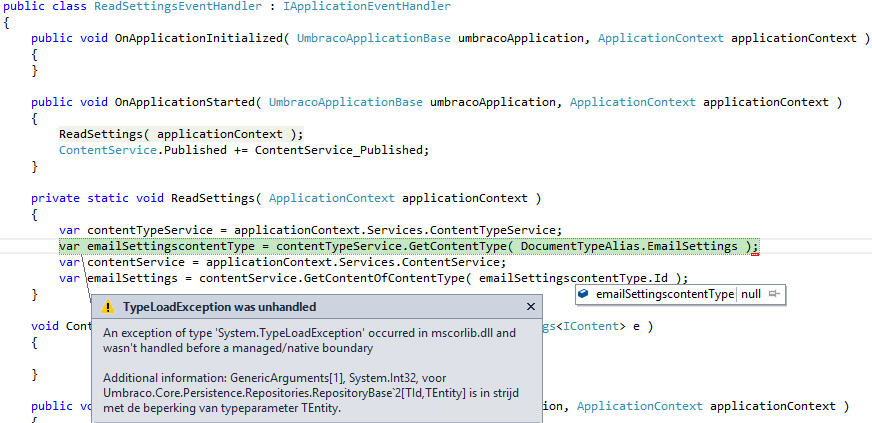 When I try to get the content type of the EmailSettings node, I get an exeption (see screenshot). Does anybody have an idea how this should be done? Thanks