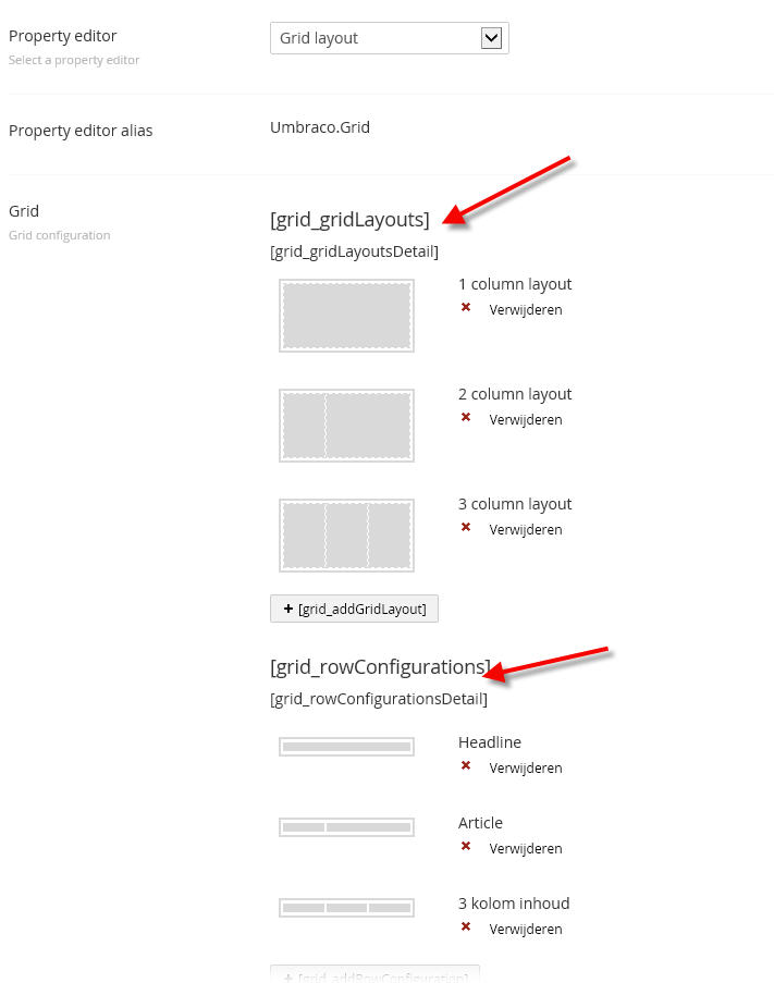 Does anybody have an idea how the localize the new Grid Layout. When I change the user's language to e.g. Dutch, I get the following in de documenttype:
