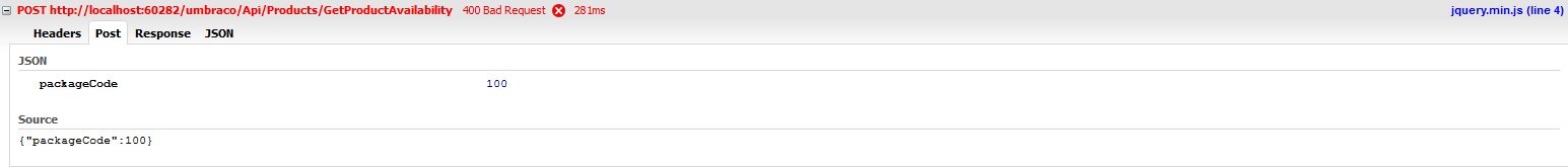 "NetworkError: 404 Not Found - http://localhost:60282/umbraco/Api/Products/GetProductAvailability"