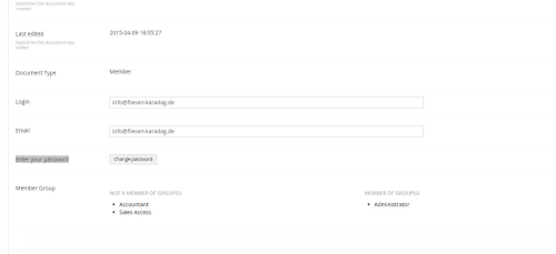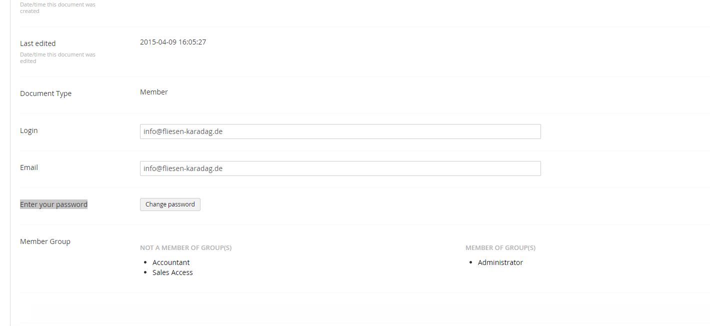 Login, Email, Enter your password, Member Group from Properties Tab in Members