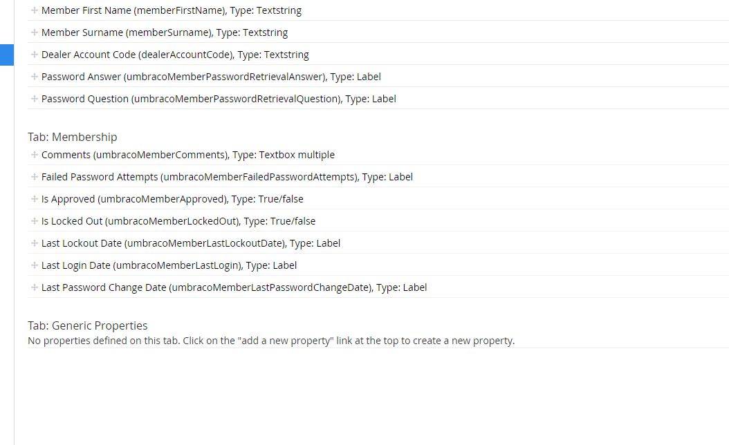 How do you move the generc properties Login, Email, Enter your password, Member Group from Properties tab into another.