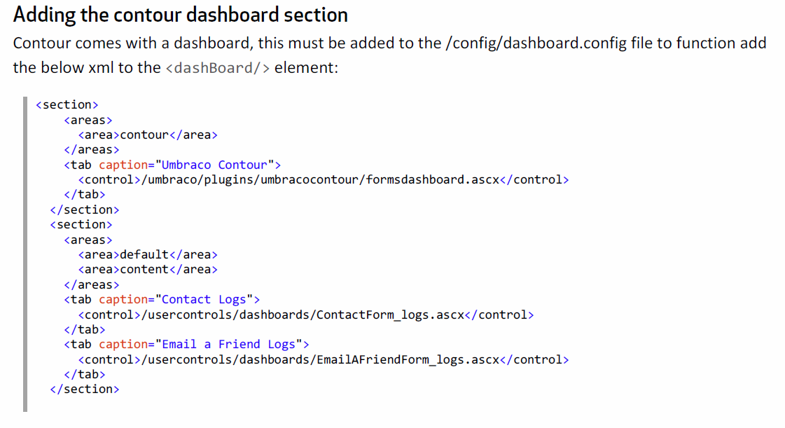I agree they are old things from the CWS package, but i didn't installe the CWS package, and if you look at page 7 in the installation guide for the manual installation of Umbraco Contour 1.1.8 is says to add the sections in the dashboard.config.