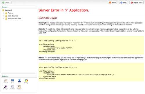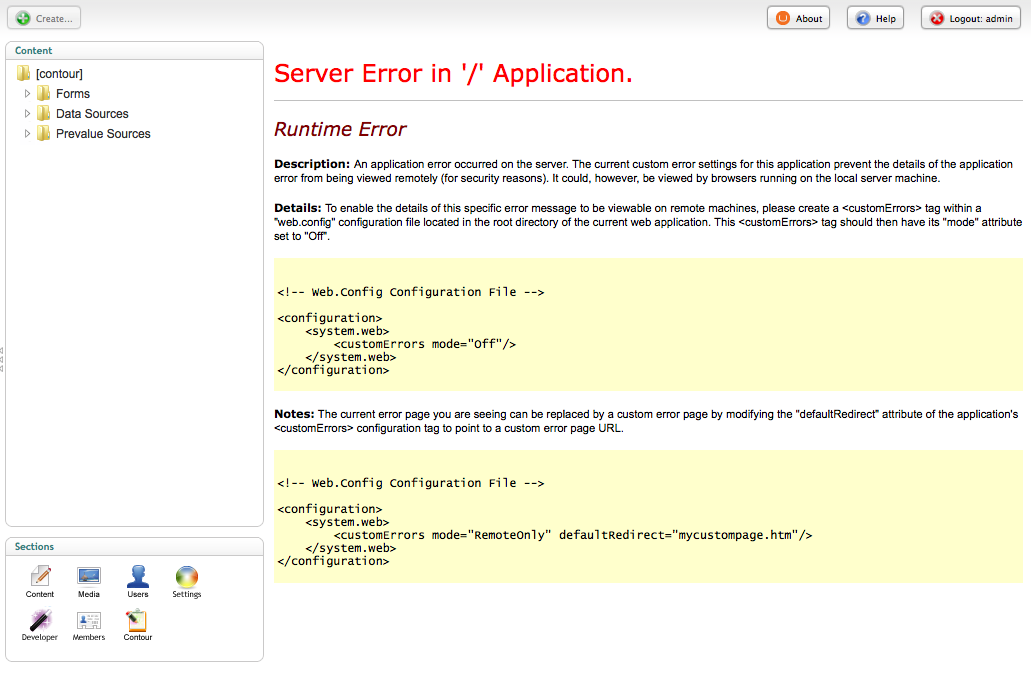 Could you turn customErrors on, so in the web.confg change <customErrors mode="Off" /> to <customErrors mode="On" /> that way we'll see more details on the error and I'll be able to help