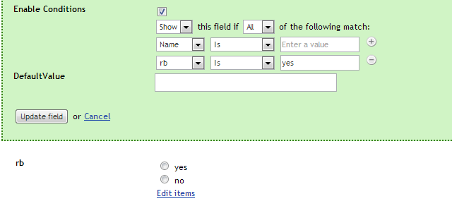 Trying to add condition to a field when someone chooses a radio button the field will show up.