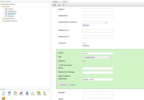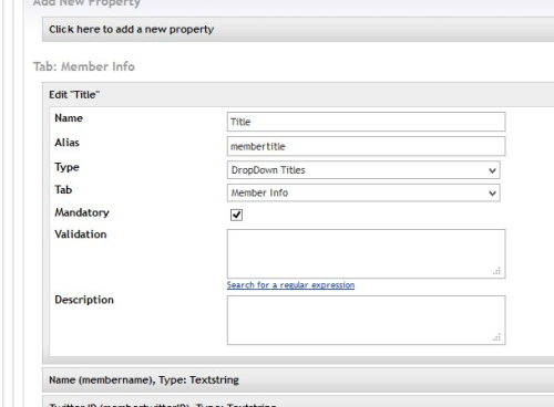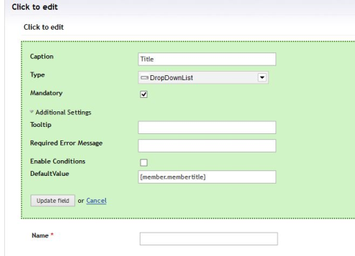 My Contour field is a standard DropDownList selected from the Type list, it has a default value of {member.membertitle}