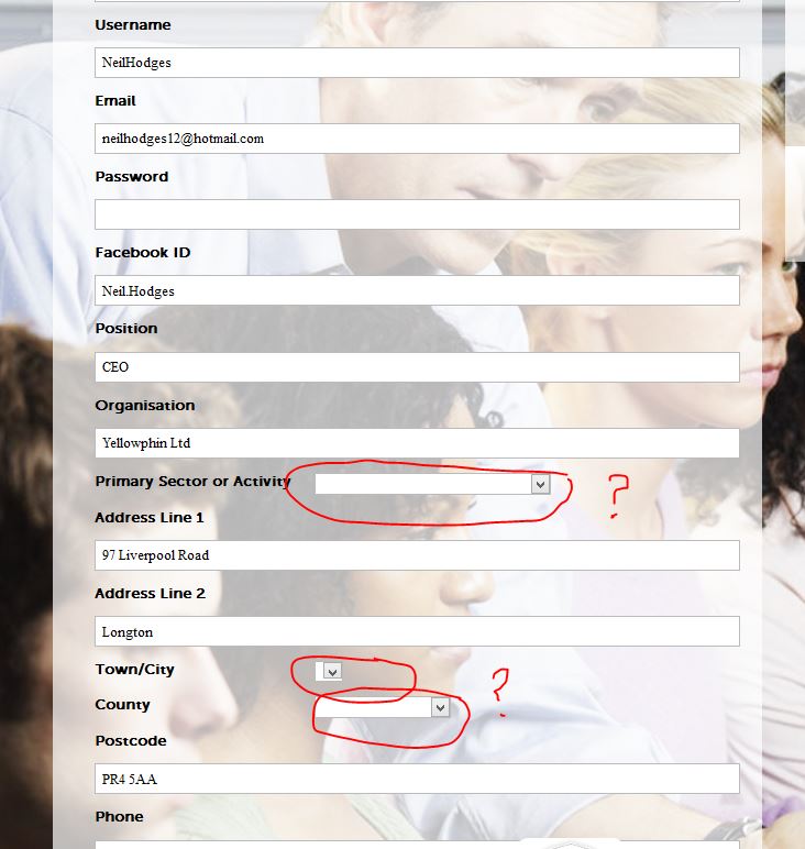 The second problem is when creating a 'My Account' section within the site to allow the mmebr/User to change certain infomation it is again not mapping the checkbox, and the drop downs, even if the {member.custom} is used in the Default value, see screen shot: