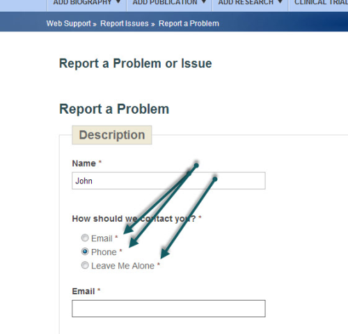 All Radio Buttons Red Starred as Required on Contour Online Form