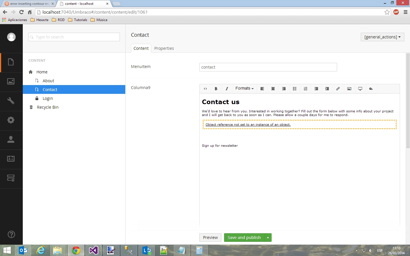 Error inserting Contour Macro in RichTextEditor in Umbraco 7