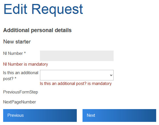 Thanks for the information, all useful and I have decided to try and give it a go with Contour. My main stumbling block however is that the form I am creating is quite large with a number of steps and I need to guide a user through the route for the selected request type with not every step being hit, I can do this on the Next button by having set the hidden field called "FormStep" to the next step associated with the type of request being performed and works fine. My issue is that I can't see a way of altering what step the user should be taken to when they click the "Previous" button.