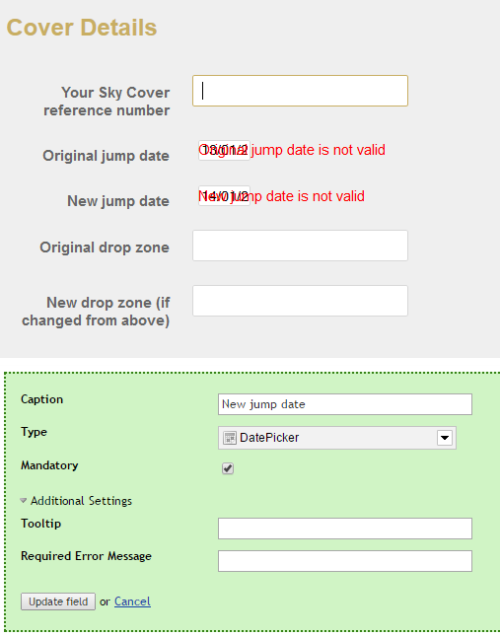 On an Umbraco 4.11 site with Contour (package version says 1.1.10) we have a date field. when any date is chosen we get the error "[field name] is not valid". You can see the error and the Contour settings in the image attached.