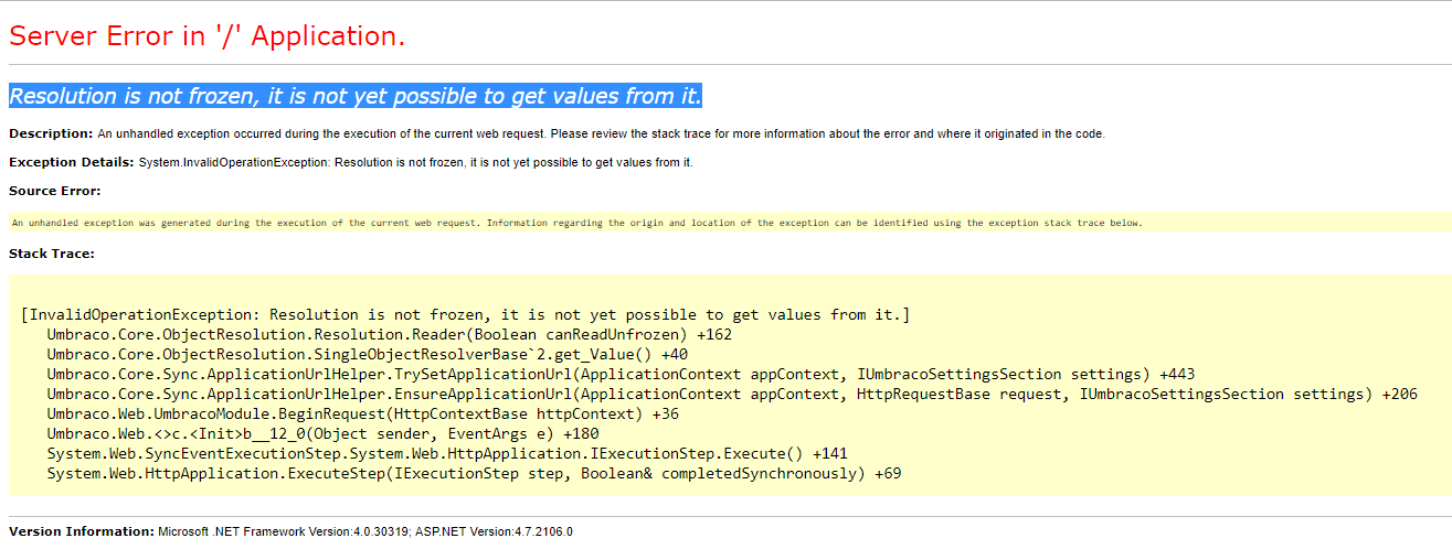 I attach to this post a screenshot of the error. Could be the error caused by different .net framework version between Umbraco and the IIS?