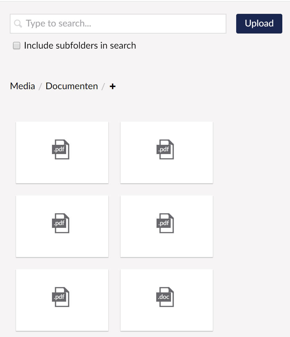For media links, we mainly want to select the appropriate document from the media library. Unfortunately, all media items are displayed in grid view as "thumbnails". For images this is great, but for documents this is confusing as all thumbnails look the same (pdf icon).
