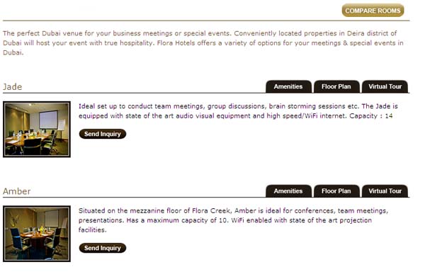 The user can also compare each room. Do I need to setup each room as content page under the meetings page?