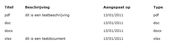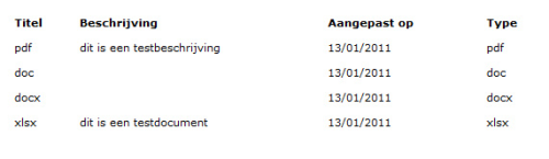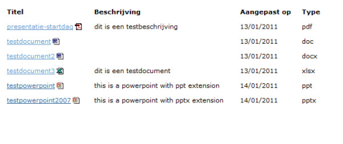 As you see, under 'titel' does not appear the link to the document with an extension icon, but just the extension string