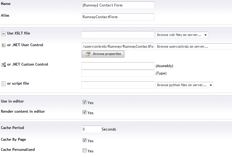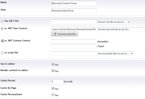 I have installed the Runway starter kit in my Umbraco 4.5.2 installation. I have tried to use the Runway Contactform macro in a RichText editor, but I get this message: