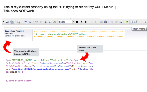I then have another XSLT file that generates its own matching Macro and am trying to put Macro in my RTE that is outputted into the template.
