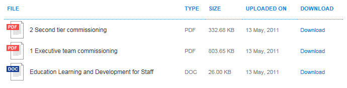 Second question - does Umbraco have a document library where admins can upload pdf's, docs etc... and then output the files onto the web page? I have also attached an image of the output in our current CMS.