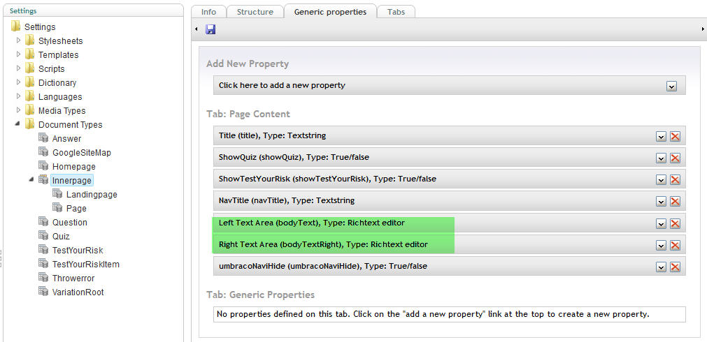 This is wat i see in the backend (notice the left text area "bodytext" containing info):