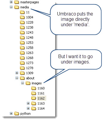 newMedia.getProperty("umbracoFile").Value = "/media/about/images/" + newMedia.Id + "/" + FileName;