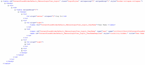 The HTML that is produced by this control does not fit the design of the site I am creating. The control spits out a TABLE with rows that each hold 2 cells (td's).