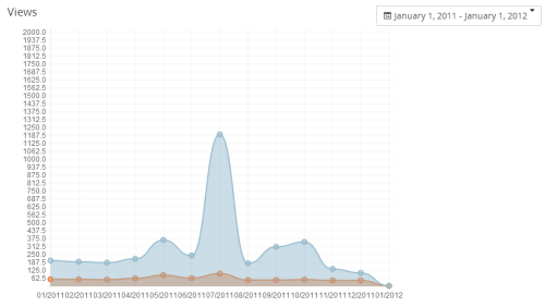 Another issue with Chart.js I think is that sometimes the text on the axis are really close to each other (mostly an issue on x-axis).. it's hard to see in this example below that it says "01/2011", next "02/2011"... etc..