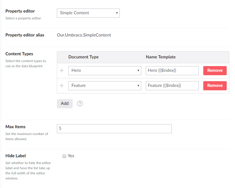 Content List is a property editor for creating a list of content blocks.
