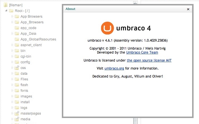 <Action runat="install" alias="addApplicationTree" silent="false" initialize="true" sortOrder="0" applicationAlias="fileman" treeAlias="fileman" treeTitle="File Manager" iconOpened="folder_o.gif" iconClosed="folder.gif" assemblyName="Dascoba.Umb.FileManager" treeHandlerType="loadFileManager" />