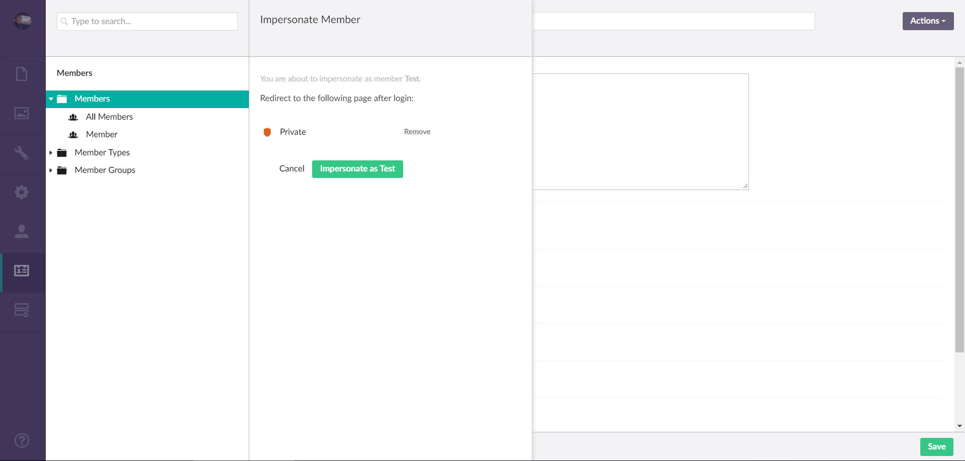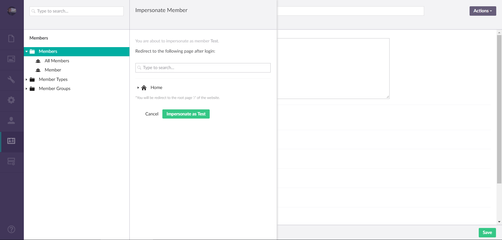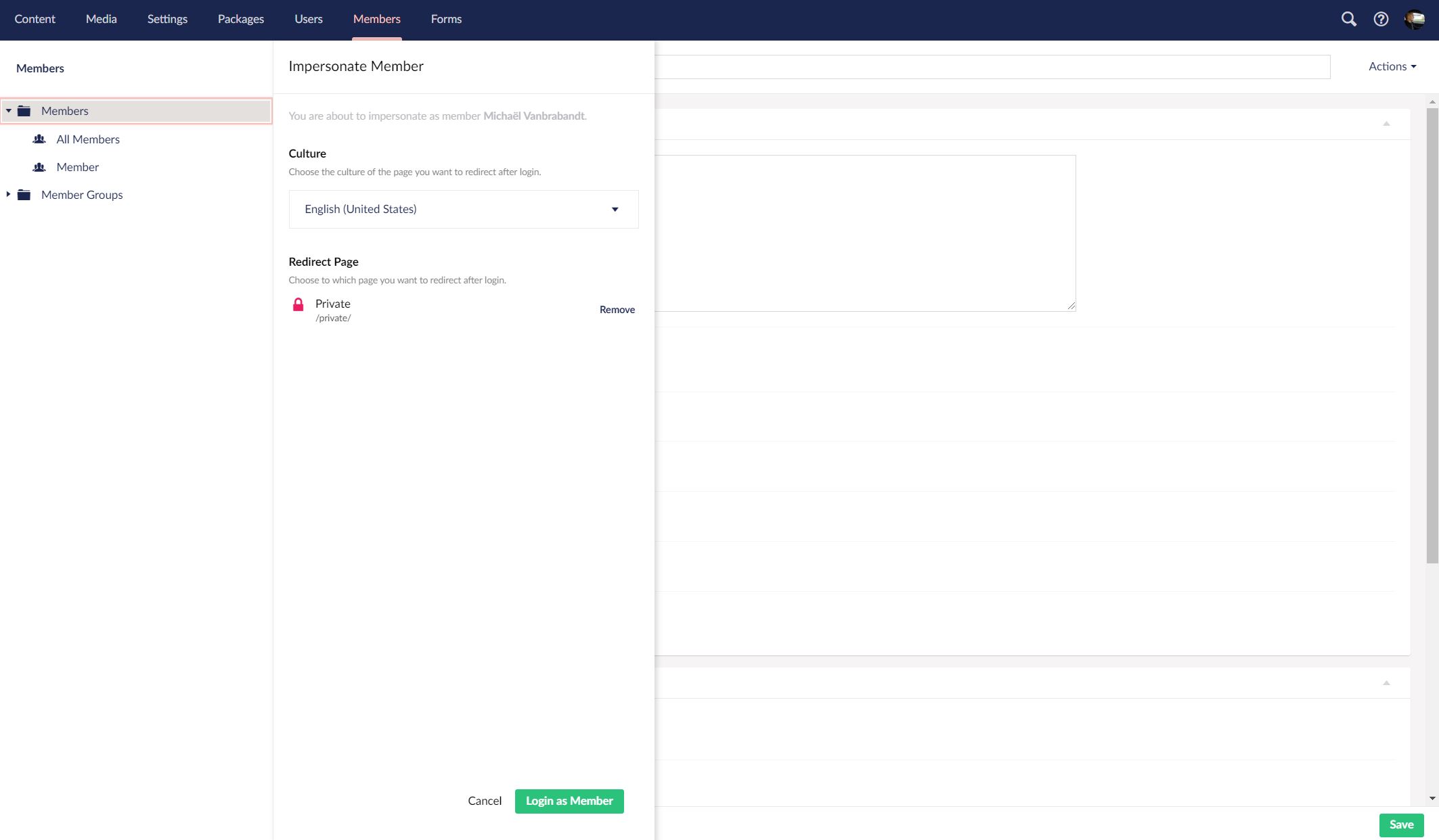 MemberLogin is a Umbraco backoffice extension package which allows you to impersonate as a Member into the front-end website.